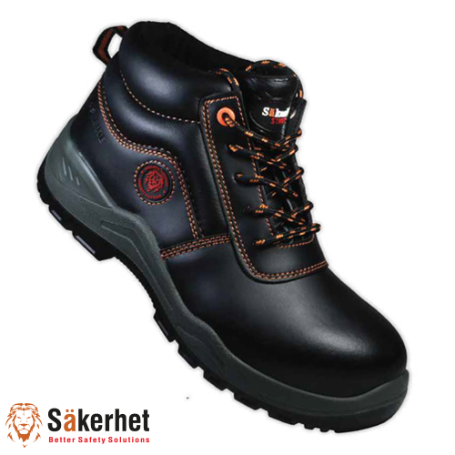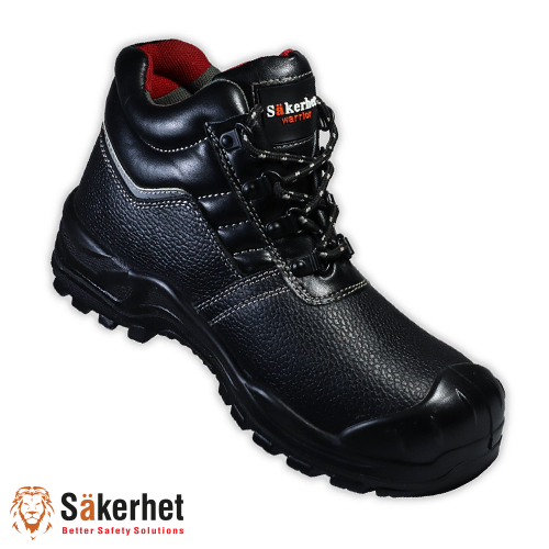 Botas de seguridad de PVC con cinta reflectante de caña alta con puntera de acero. Inyectada de una sola pieza en dos colores con absorbedor de impacto en el talón, suela resistente a la abrasión, flexión y desgarro. Protección reforzada en el talón.
